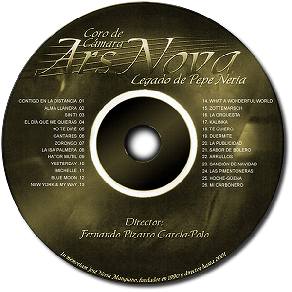 Contigo en la distancia Alma llanera Sin ti El Día que me querras Yo te diré Cantares Zorongo La isa palmera Hator mutil Yesterday Michelle Blue Moon New York & my way What a wonderful world Zottelmarsch La Orquesta Kalinka Te quiero Duermite La publicidad Sabor de bolero Arrullos Canción de Navidad Las Pimentoneras Noche Güena Mi carbonero
